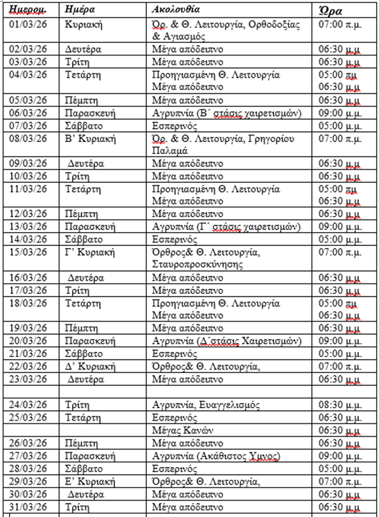 Πρόγραμμα ακολουθιών Maρτίου 2026