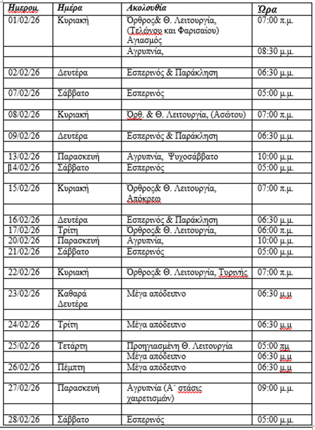 Πρόγραμμα Φεβρουαρίου 2026